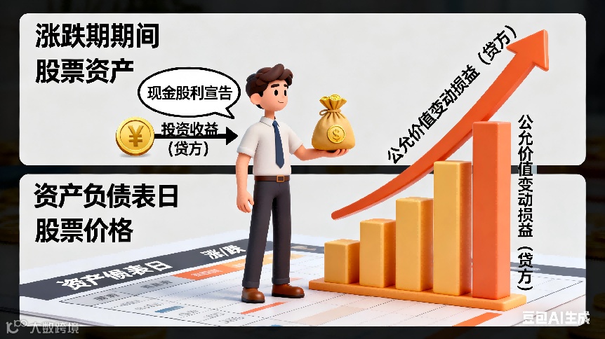公允价值变动损益 vs 投资收益:持有期间公允价值变动计入前者,出售损益及持有期间股利 / 利息计入后者。