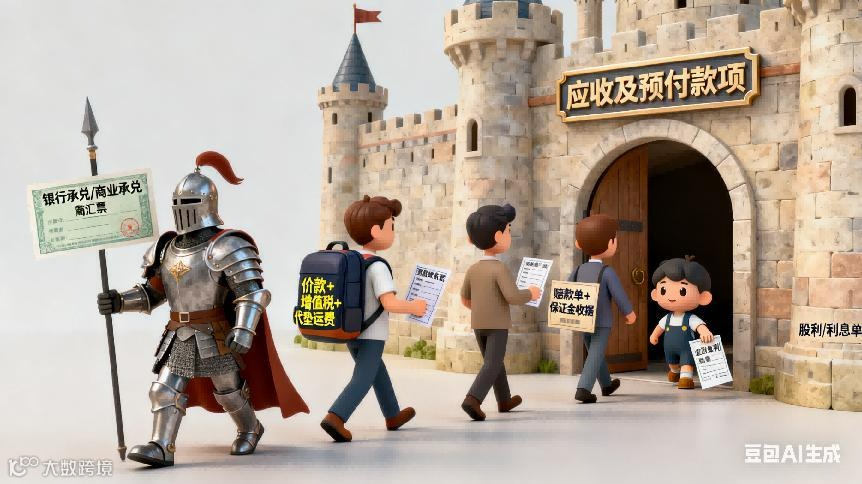 应收票据 vs 应收账款:应收票据是商业汇票结算,有到期日,应收账款是无书面付款承诺的债权。