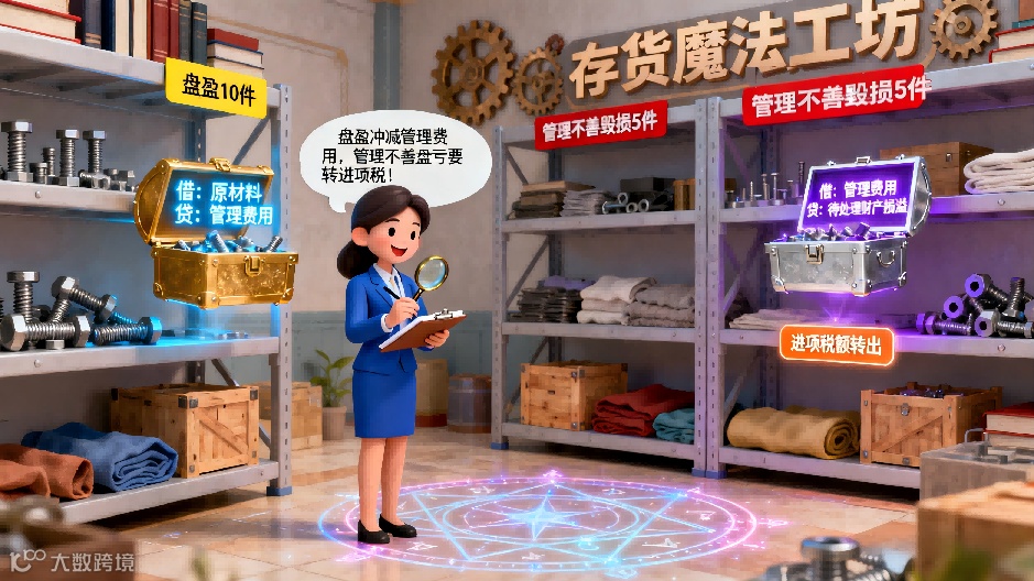 盘亏:管理不善导致的计入 “管理费用”(需转出进项税额),自然灾害导致的计入 “营业外支出”(无需转出进项税额)。