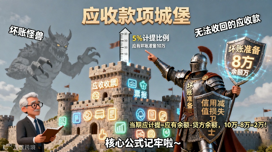 应有余额:通常按应收款项余额 × 计提比例计算(如应收账款 200 万,计提比例 5%,应有余额 10 万)。