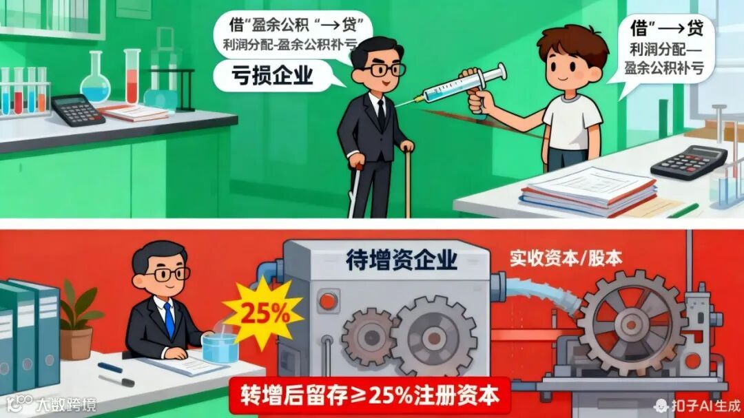 转增资本:借 “盈余公积”,贷 “实收资本 / 股本”(留存部分不得少于转增前注册资本 25%)。