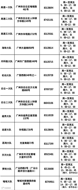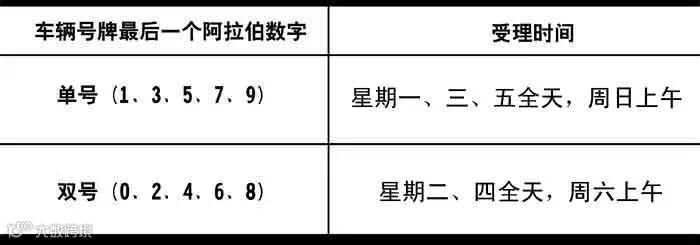 据初步统计,2014年9月到期年检的广州市籍免检车2万多辆,目前,由于核发6年免检机动车检验标志的预约系统正在改造,为避免6年免检车申领检验标志出现“扎堆”办理的情况,在我市实行6年免检车年检预约之前,广州交警推出过渡期单双号错峰办理措施。符合免检车条件的车主,需根据车辆号牌最后一个阿拉伯数字对应的受理时间申领检验标志,其中单号受理时间为星期一、三、五全天,周日上午;双号受理时间为星期二、四全天,周六上午,法定节假日除外。此外,番禺、花都、从化、南沙、增城、萝岗的窗口周六、日不办公。