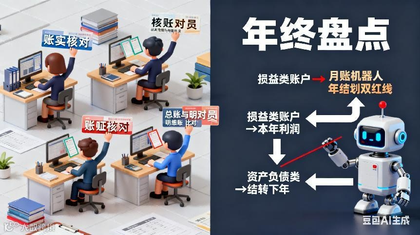 结账:月结划单红线、年结划双红线;损益类账户结转至 “本年利润”,资产负债类账户结转下年。