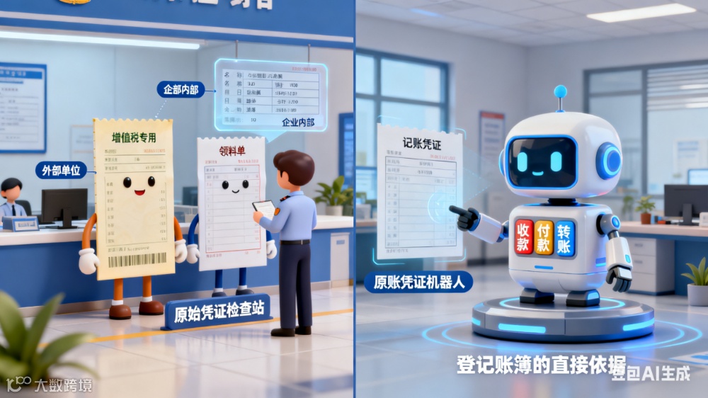 原始凭证 vs 记账凭证:原始凭证是业务发生依据(外来 / 自制),记账凭证是登记账簿依据(根据原始凭证编制)。