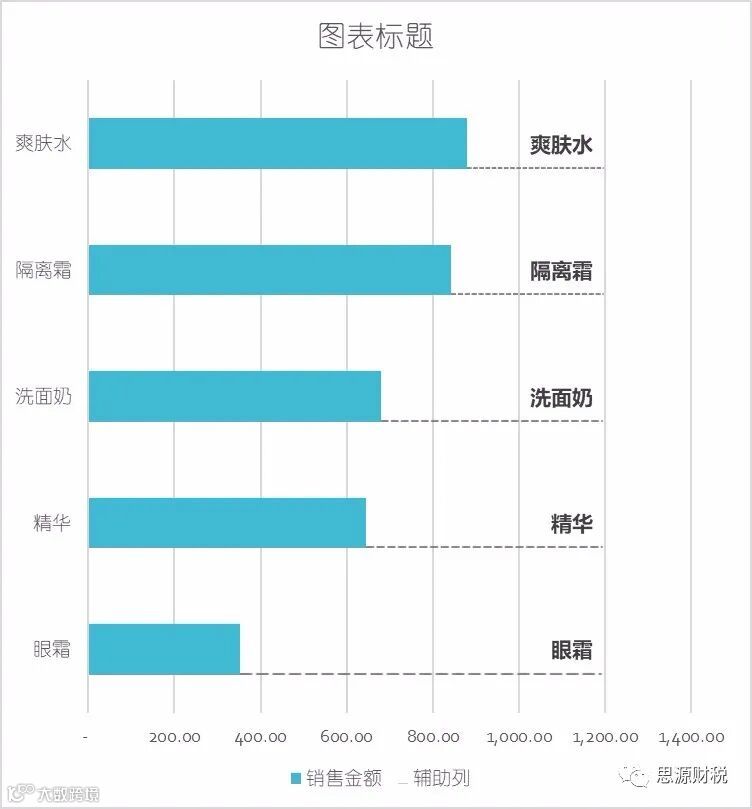 第四步:删除纵坐标轴标签,增加销售金额数据标签,如图1-4;