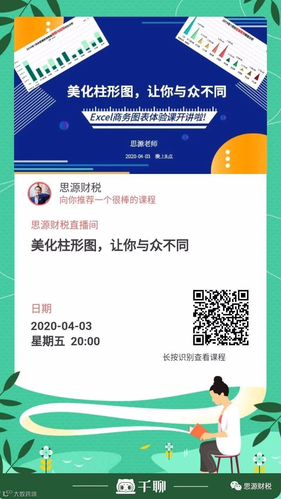 导读:本周五晚上千聊免费分享《美化柱形图,让你与众不同》,想学习的朋友,请扫描千聊二维码。做好Excel商务图表,