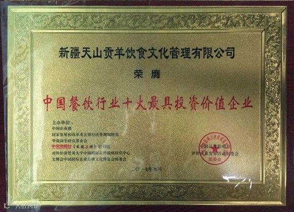 日前,2017(第四届)中国品牌影响力评价成果发布活动在北京隆重举行。大会以“发挥品牌引领作用,推动供需结构升级”为主题,推选出一批优秀的企业品牌。天山贡羊凭借雄厚的综合实力和品牌影响力,在近千家品牌中脱颖而出,荣膺2017中国餐饮行业十大最具投资价值企业与2017全国绿色餐饮企业的光荣称号。