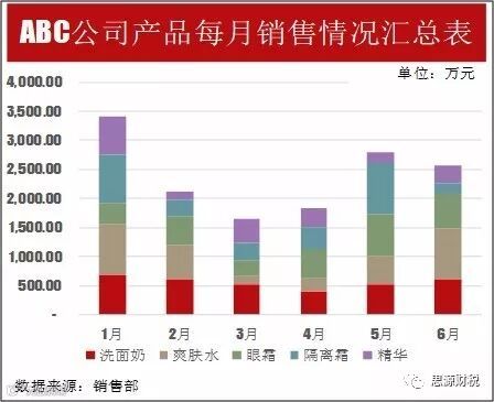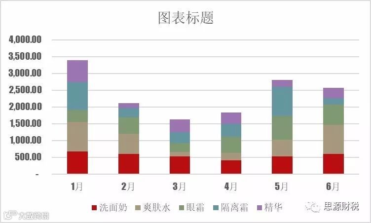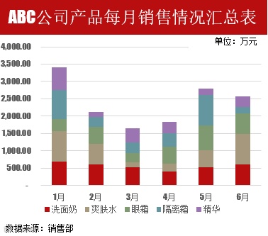 (4)恢复1-6月份所有产品可视化堆积柱形图。