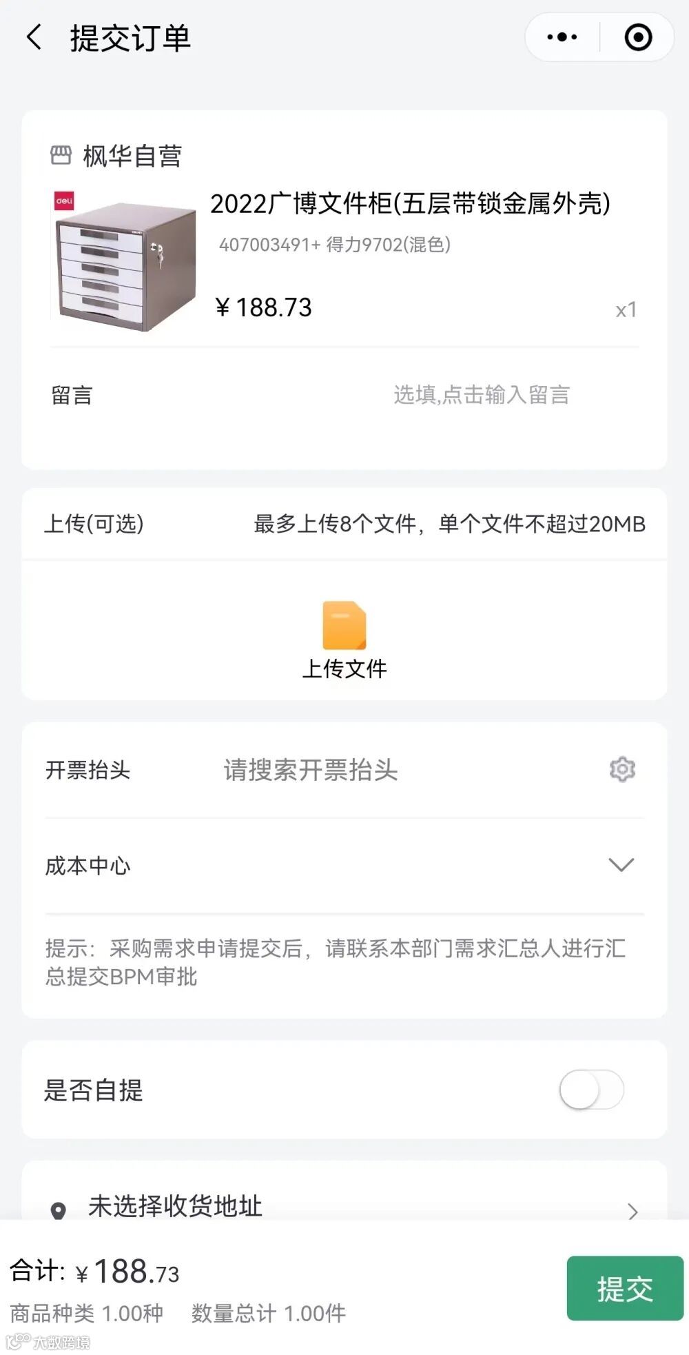 提前编辑好收货地址,选择自己公司的开票抬头和成本中心