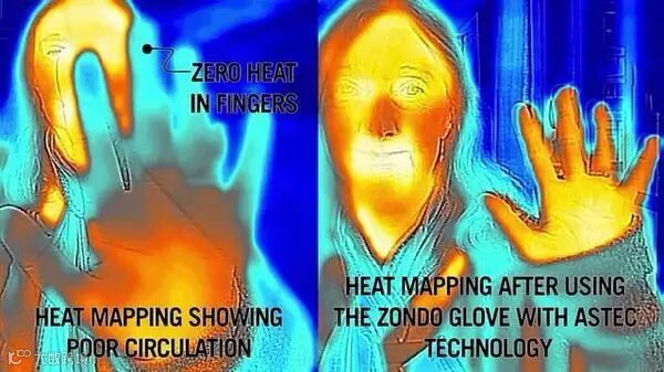 乍得一看,这手套也没有电池。怎么加热?其实它所采用的材质非常特殊,是Astec Int以及Zondo公司发明的新型织物,可以实现无电池发热。