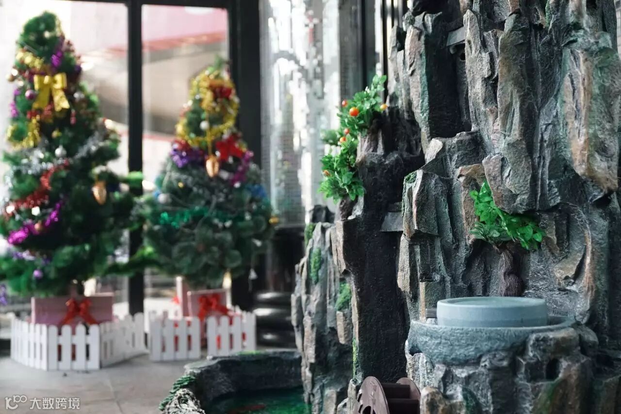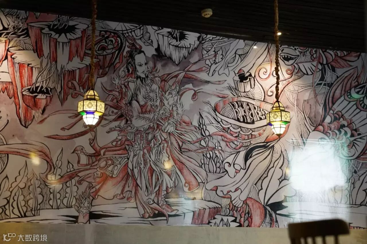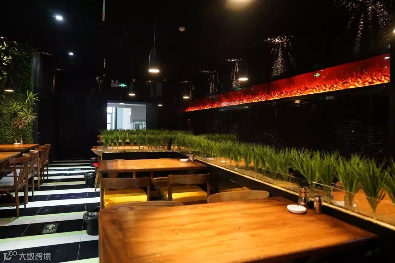 饭爷餐厅在室内放眼看去,黑色、绿色、红色三个色彩的融合,让人无压抑感,十分舒适。