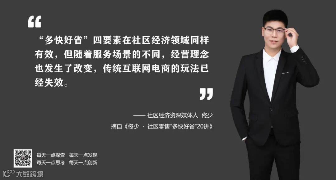 多快好省是商业零售的四种核心要素,既然符合人性,那么就不会随着时代的发展有太大的变化,或者没有没有变化的那么快,在社区经济时代下四要素继续有效,但发挥的作用不太一样,主要原因是社区经济跟商圈经济的特征不太一样,最大的区别是社区经济经营的是用户而商圈经济经营的是产品,在社区经济场景下“多快好省”发生作用的方式自然不同,如果不注意到这一点,实际上在社区里面做商业零售是非常难的,而且失败者比比皆是。