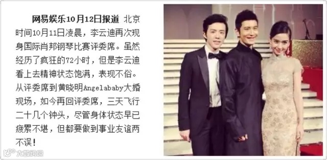 10月初李云迪曾在担任肖邦赛评委期间请假回国参加好友婚礼,之后又赶回波兰继续担任评委。此事一度引起巨大非议。