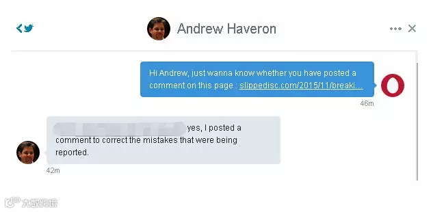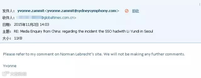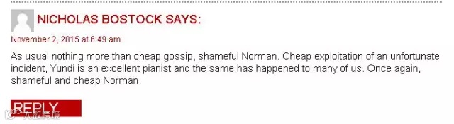 令人遗憾的是,虽然交响乐团的人直接站出来澄清了事实,但在那家由英国乐评人Norman Lebrecht开设的Slippedisk.com的网站上,Norman仅仅是把Andrew的澄清信息放在了报道的最下面,作为一个补充,并没有删掉他最初转发的错误报道。这直接导致不少网友仍在继续被误导。也有网友抗议说,他应该撤掉错误的报道,而不是为了“制造话题”就继续放出错误的信息。