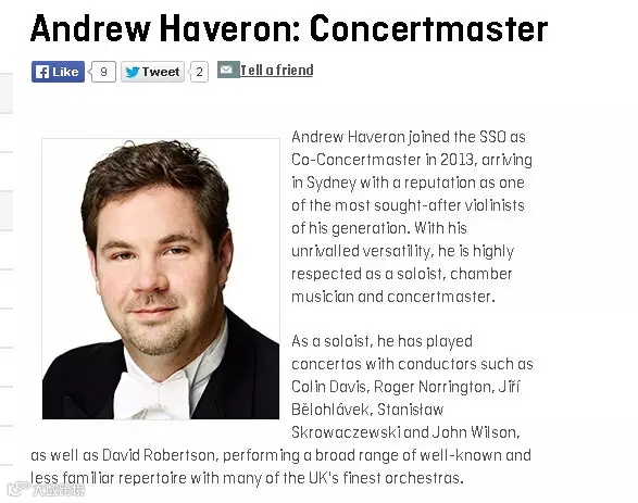 那么,你肯定很好奇,这个Andrew是谁呢?他为什么会知道这么多?当时,耿直哥猜测他是不是就是悉尼交响乐团的人,于是便将他的名字放在搜索引擎中进行了搜索,发现果然他也是乐团的一名小提琴手。