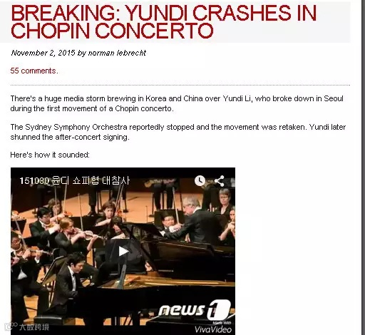结果,在一个名叫Slippedisk.com的古典音乐资讯网站上,我发现了一篇英文的报道,也是关于此事的。不过,这篇英文报道也只是翻译了那篇韩国媒体的报道,并无任何新的内容。