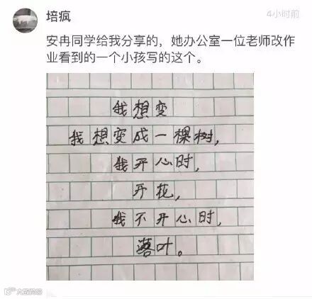 网友分享了一首小朋友写的诗