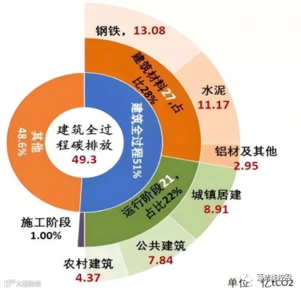 从2020年全球建筑和建造业的状况报告与能源方向来看,整个建筑业与能源的消耗量大概占据了35%,整个终端能源消耗量与二氧化碳有关的排放量占了38%。可见,整个建筑业的碳排放量在整体碳排放量中占据了足足三分之一,有着举足轻重的位置。