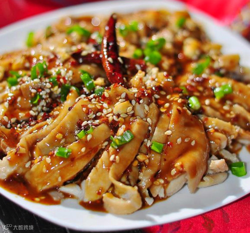 6)将鸡腿切成条码在盘中。淋上料汁。