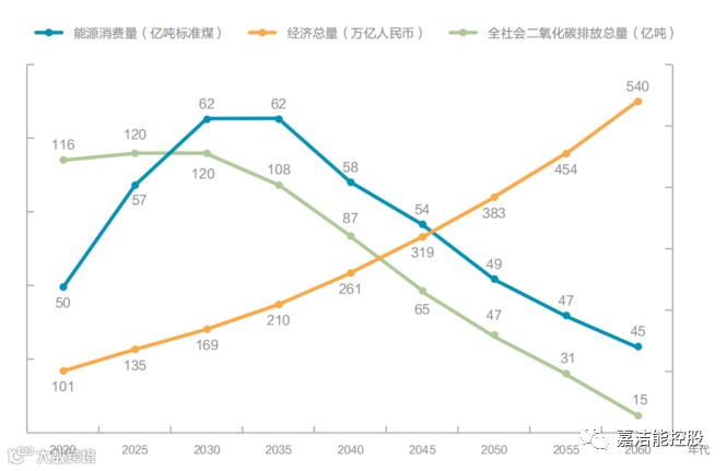 《报告》预测,随着我国经济-能源-环境关系与新发展格局-新型能源体系-碳达峰碳中和同步重塑,经济、能源、碳排放之间逐步实现脱钩。