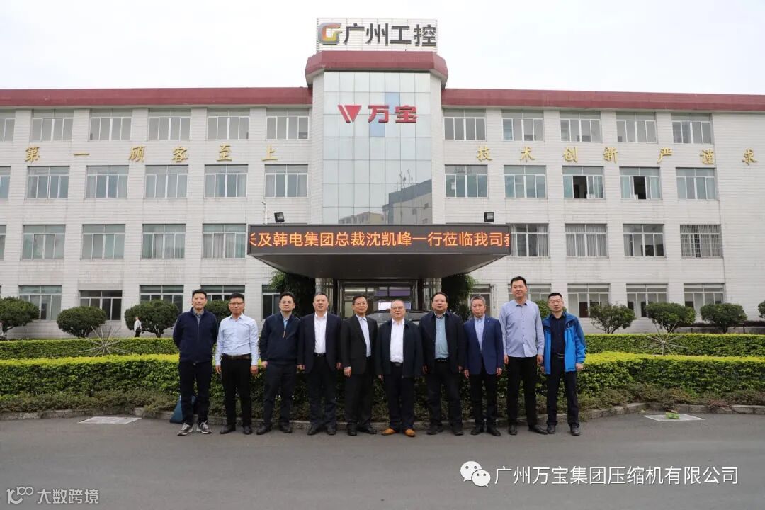 2021年3月22日下午,江苏省宿迁市副市长冯建林等多名领导班子及韩电集团总裁沈凯峰一行到访广州工控旗下万宝压缩机,广州工控集团副总经理刘会春、工控集团总工程师兼万宝压缩机董事长王松、万宝压缩机总经理邬本明、副总经理段松涛等陪同接待。