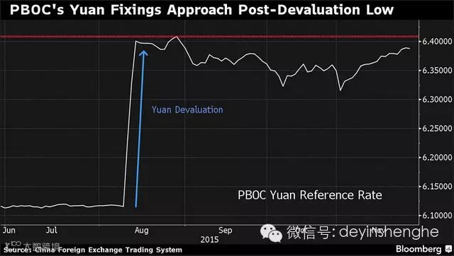 今年8月11日,中国央行宣布,从当日起中间价将参考上日银行间外汇市场收盘汇率,当天人民币兑美元中间价大幅下调逾千点,创史上最大降幅。截至10月初,人民币两个月内累计贬值2.4%。昨日人民币兑美元中间价又降至6.3877,仅比8月27日的四年最低汇价高0.3%。