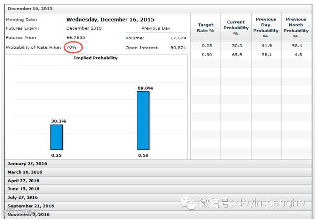摩根大通首席经济学家 Michael Feroli认为,数据显示劳动力市场复苏强劲,12月美联储有相当大的概率选择加息。期货市场显示,对于美联储加息的概率预期升至70%,周四为60%。