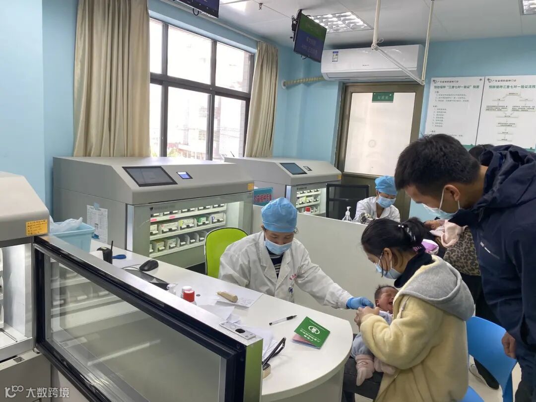 图|今年3月,从化区一个社区卫生服务中心的医护正操作万宝智能疫苗柜SVM-590取出疫苗为小宝宝注射。