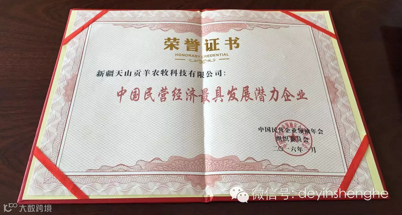 会议中,新疆天山贡羊农牧科技有限公司董事长秦斌荣获中国民营经济最具影响力人物!新疆天山贡羊农牧科技有限公司获中国民营经济最具发展潜力企业!