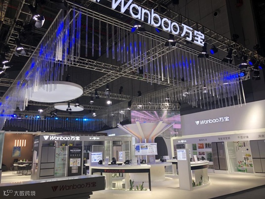 而AWE恰恰成为万宝品牌展示自身生产实力和产品魅力的重要舞台。《电器》记者发现,在AWE2021上,万宝展位整体以寓意“海纳百川,有容乃大”的“冰川”为元素,运用1100根亚克力管,搭配LED多彩变色灯及车展灯,渲染出十足的科技感。
