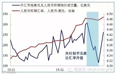 但在上周汇率稳住后,这个交易量就迅速下滑,指向在这个阶段央行似乎不愿让人民币去升值。因为马上就要新的一年,个人一年5万美元的额度就要更新,也就意味着一些人可能等年初去换汇。
