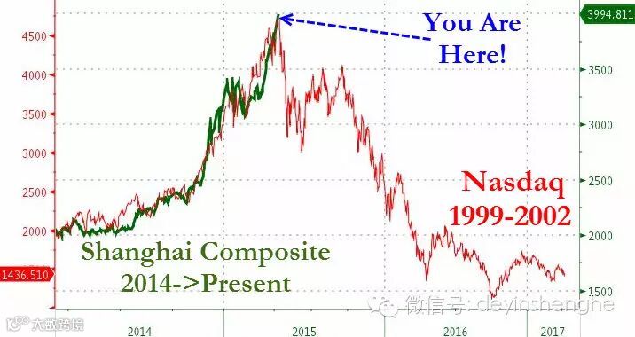 中国股市上涨的斜率比15-16年前的纳指还大。