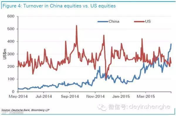 德意志银行比较发现,中国股市之疯狂,就连互联网泡沫时期的纳指都难以望其项背: