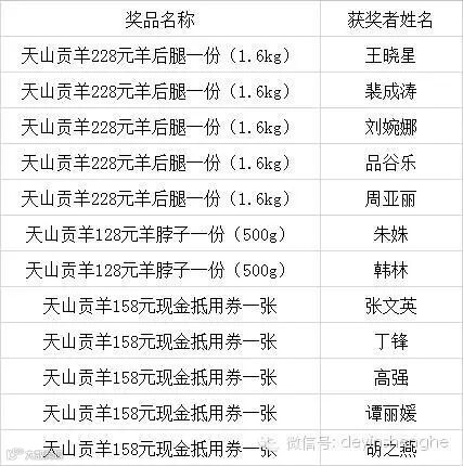 天山贡羊暖冬送大礼活动结束啦,很多小伙伴收获了价值不菲的礼品哦,快来看看奖品单里有没有你的名字~