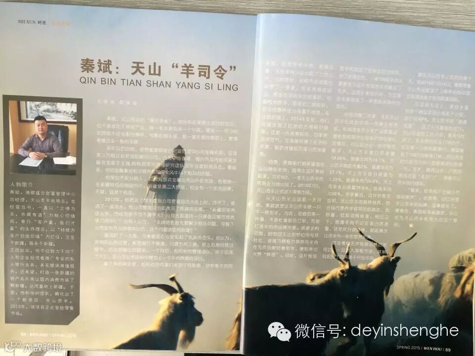 天山贡羊正式上选乌鲁木齐市商业银行VIP客户专属杂志《问候》2015年春季版-总第5期,后续天山贡羊更多精彩报道,请让我们拭目以待。