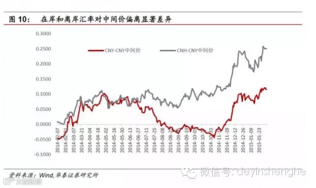 虽然央行掌握了人民币的核心定价权,但近几年市场化力量也在频频挑战人民币汇率中间价,尤其是在放大即期汇率对中间价的日波动区间后。我们也看到了很多市场力量对于人民币定价权的渗透,例如境内私人主体的购汇行为在增加,结售汇的强制性有所减弱,即期汇率对于中间价的偏离有所加大,离岸汇率方面的偏离则更加显著。