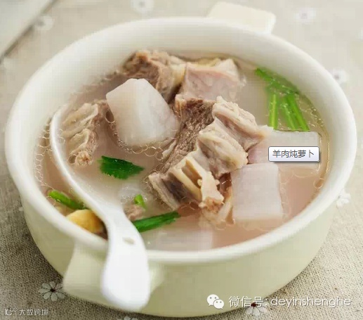 用肉质细嫩的羊肉来搭配着萝卜做成的羊腩炖萝卜是个简单的,原汁原味的汤菜。做这个汤菜无需过多的佐料来捣乱,只用一点生姜和精盐来调配一下味道,要的就是原汁原味,那种朴实的汤浓味鲜。