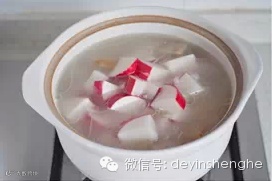 3、萝卜洗净后切成大块放入砂锅,小火炖30分钟。