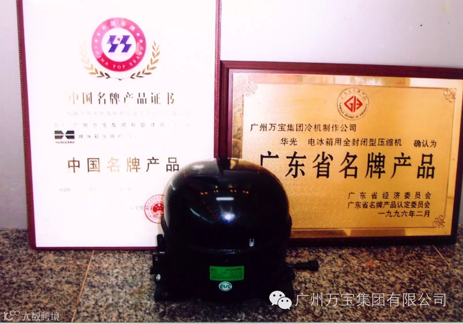 万宝“HUAGUANG”牌电冰箱压缩机被评为“中国名牌产品”。