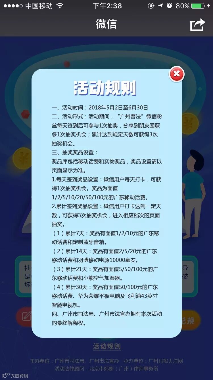 每天坚持到“广州普法”公众号签到,即可参与抽奖