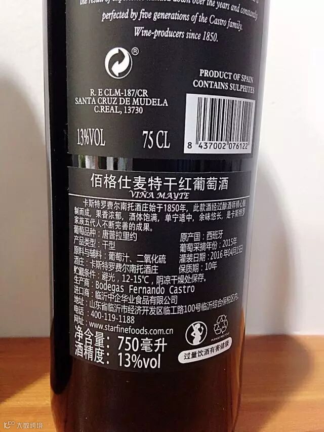 西班牙进口佰格仕麦特干红葡萄酒