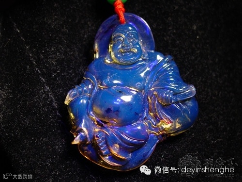 蓝珀是琥珀种类中比较名贵的品种,主要产自加勒比海大安的列斯群岛中。在天然灯光的照射下,蓝珀的颜色并不是浓郁的蓝色调,它需要在紫外荧光灯下才能展现它美丽的颜色,有蓝绿色、蓝紫色等多种色调,其中以美丽的天空蓝最具特色,也是蓝珀中价格最高的一个品种。蓝珀在国际珠宝市场上很受追捧,是很多琥珀爱好者喜爱的藏品,在琥珀市场上的价格也一直居高不下。