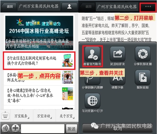 点击右上角按钮就可加关注“广州万宝集团民权电器”哦。它将为大家带来更多的服务与优惠。
