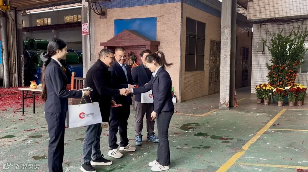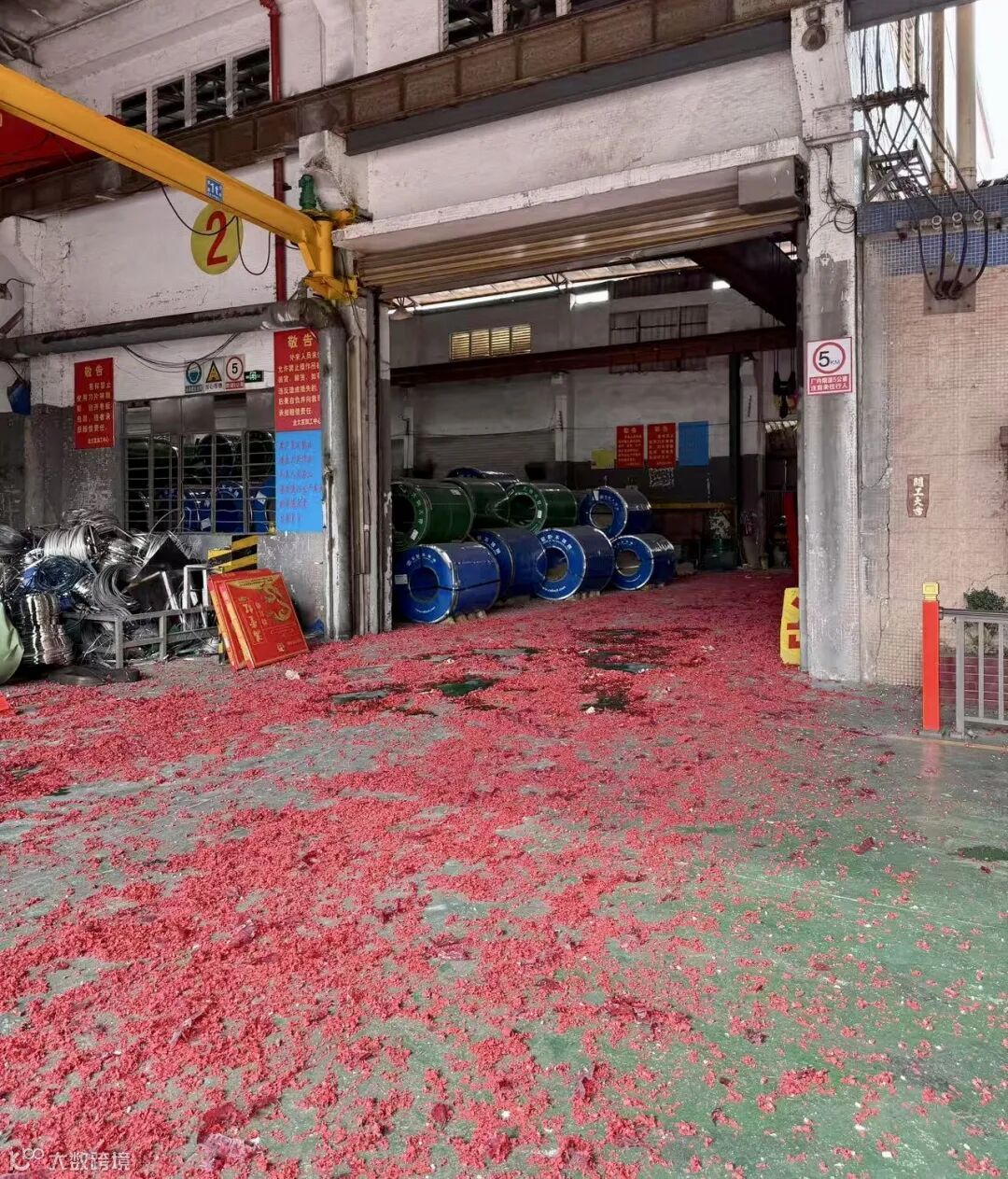 加工中心厂前鞭炮齐鸣,一片热闹景象
