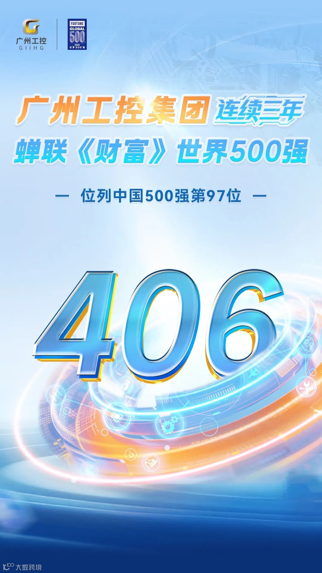 7月29日,全球企业瞩目的《财富》世界500强榜单正式发布。广州工业投资控股集团有限公司(以下简称“广州工控集团”)以稳健的经营实力与强劲的产业竞争力,继2023年首次上榜后连续三年入围,位列全球企业第406位;在中国500强榜单中更实现历史性跨越,首次跻身百强,排名第97位,交出“世界500强稳居、中国500强领跑”的亮眼答卷。