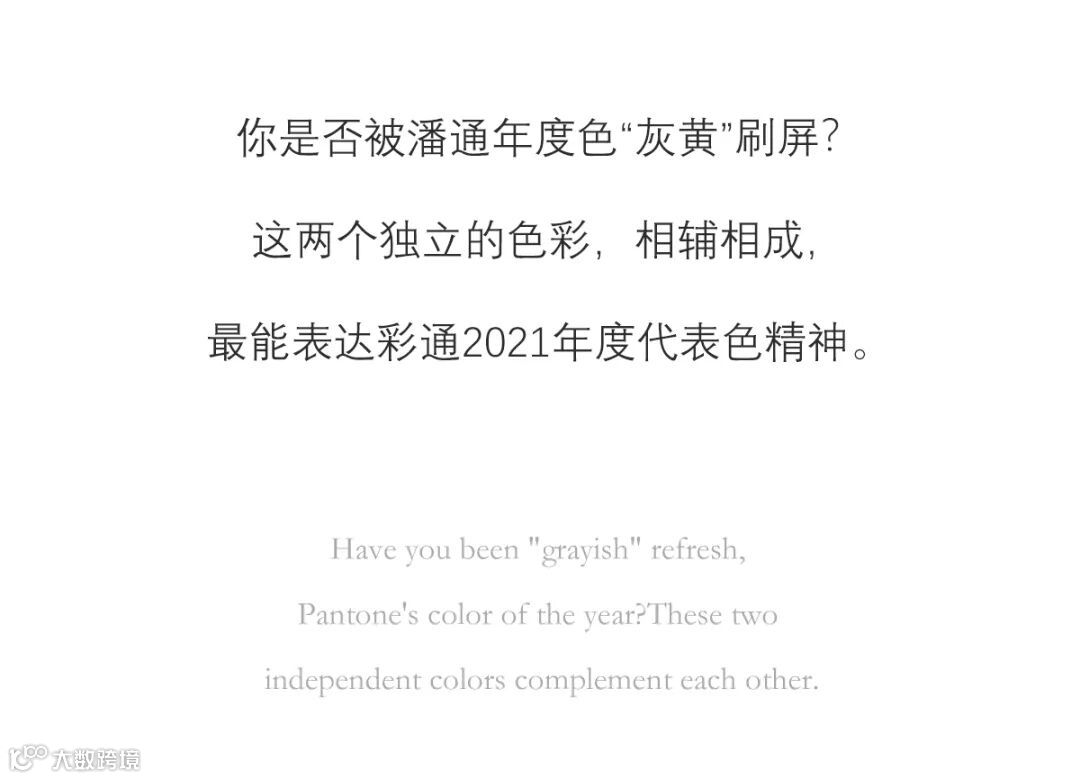 “ 持久耐看的「极致灰」与生动活泼的「亮丽黄」联手表达出坚韧的正向态度。这个色彩组合实用又稳固,同时也是温暖又乐观,为我们带来韧性与希望。我们需要感受到鼓舞与振奋,这是人类心灵的基本要素。”