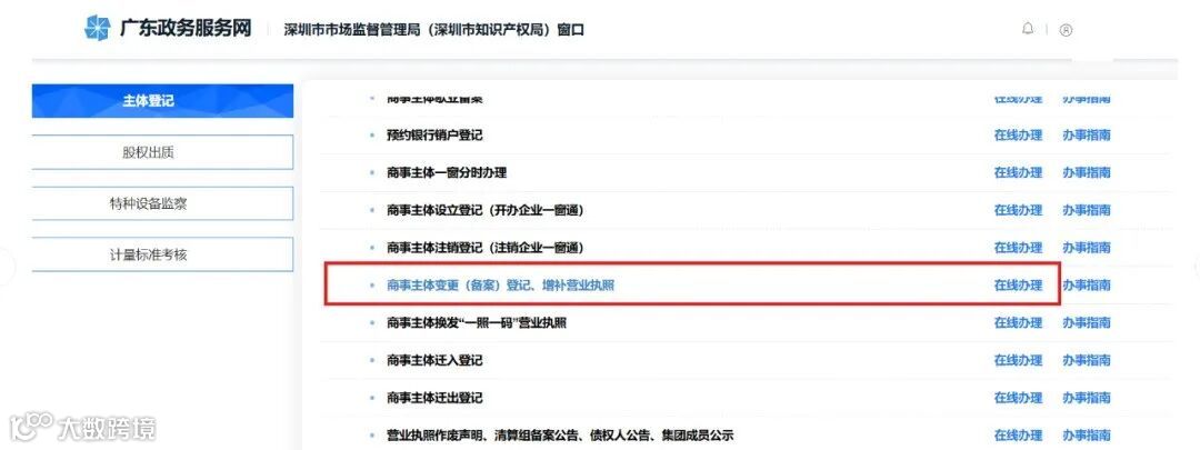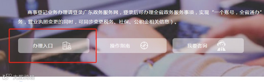 2、点击“商事主体登记注册变更”→“办理入口”
