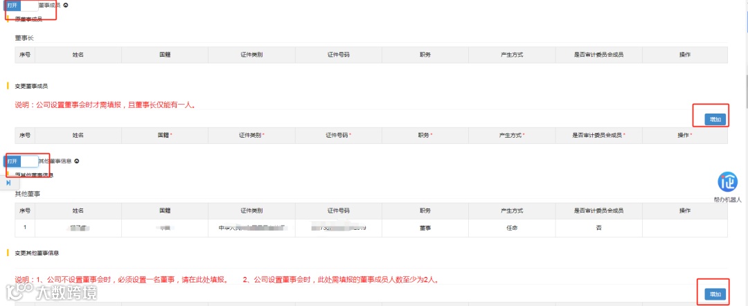 ②打开其他董事信息-填写一名董事;(因7月1日实施新公司法,不设执行董事,仅可选择董事一人或董事会)