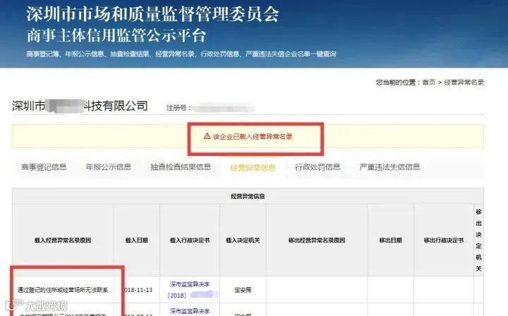 工商局的网站上会定期更新被列入经营异常名录的企业名单,其中很多企业是因为通过登记的住所或经营场所无法联系。