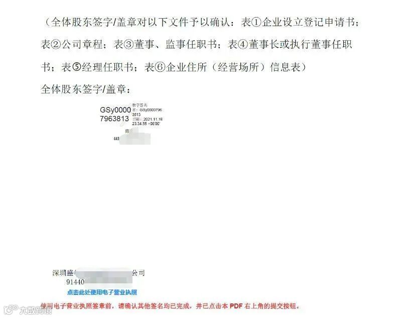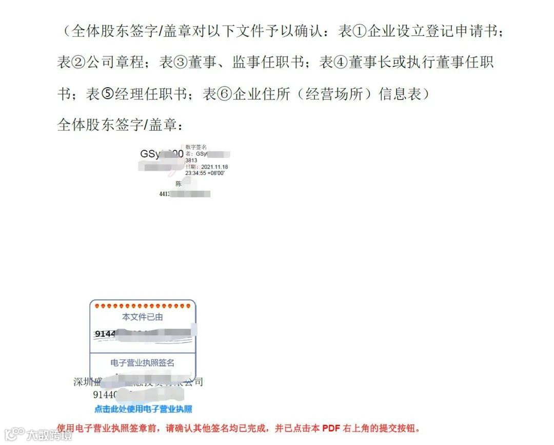 1、非深圳本地企业只允许使用电子营业执照签名 。